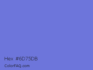 Hex #6d75db Color is a light blue color and the nearest color is Moody Blue #7f76d3. Hex code #6d75db and RGB value is rgb(109,117,219). In RGB color space, this color is composed of 43% red, 46% green, 86% blue, In CMYK color space, this color is composed of 50% cyan, 47% magenta, 0% yellow , 14% black , In HSL color space, this color has a hue angle of 236° , 60% saturation and 64% lightness.