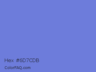 Hex #6d7cdb Color is a light blue color and the nearest color is Moody Blue #7f76d3. Hex code #6d7cdb and RGB value is rgb(109,124,219). In RGB color space, this color is composed of 43% red, 49% green, 86% blue, In CMYK color space, this color is composed of 50% cyan, 43% magenta, 0% yellow , 14% black , In HSL color space, this color has a hue angle of 232° , 60% saturation and 64% lightness.