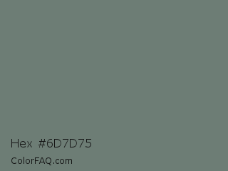 Hex #6d7d75 Color is a normal green color and the nearest color is Smoke #738276. Hex code #6d7d75 and RGB value is rgb(109,125,117). In RGB color space, this color is composed of 43% red, 49% green, 46% blue, In CMYK color space, this color is composed of 13% cyan, 0% magenta, 6% yellow , 51% black , In HSL color space, this color has a hue angle of 150° , 7% saturation and 46% lightness.