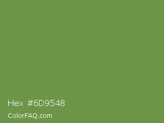Hex #6d9548 Color is a normal green color and the nearest color is Palm Leaf #6f9940. Hex code #6d9548 and RGB value is rgb(109,149,72). In RGB color space, this color is composed of 43% red, 58% green, 28% blue, In CMYK color space, this color is composed of 27% cyan, 0% magenta, 52% yellow , 42% black , In HSL color space, this color has a hue angle of 91° , 35% saturation and 43% lightness.
