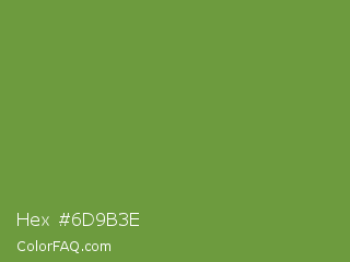 Hex #6d9b3e Color is a normal green color and the nearest color is Palm Leaf #6f9940. Hex code #6d9b3e and RGB value is rgb(109,155,62). In RGB color space, this color is composed of 43% red, 61% green, 24% blue, In CMYK color space, this color is composed of 30% cyan, 0% magenta, 60% yellow , 39% black , In HSL color space, this color has a hue angle of 90° , 43% saturation and 43% lightness.