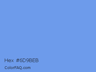Hex #6d9beb Color is a light blue color and the nearest color is Cornflower Blue #6495ed. Hex code #6d9beb and RGB value is rgb(109,155,235). In RGB color space, this color is composed of 43% red, 61% green, 92% blue, In CMYK color space, this color is composed of 54% cyan, 34% magenta, 0% yellow , 8% black , In HSL color space, this color has a hue angle of 218° , 76% saturation and 67% lightness.