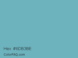 Hex #6db3be Color is a normal cyan color and the nearest color is Moonstone Blue #73a9c2. Hex code #6db3be and RGB value is rgb(109,179,190). In RGB color space, this color is composed of 43% red, 70% green, 75% blue, In CMYK color space, this color is composed of 43% cyan, 6% magenta, 0% yellow , 25% black , In HSL color space, this color has a hue angle of 188° , 38% saturation and 59% lightness.