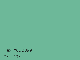 Hex #6db899 Color is a normal green color and the nearest color is Silver Tree #66b58f. Hex code #6db899 and RGB value is rgb(109,184,153). In RGB color space, this color is composed of 43% red, 72% green, 60% blue, In CMYK color space, this color is composed of 41% cyan, 0% magenta, 17% yellow , 28% black , In HSL color space, this color has a hue angle of 155° , 35% saturation and 57% lightness.