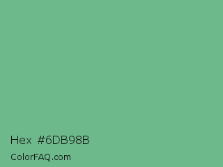 Hex #6db98b Color is a normal green color and the nearest color is Silver Tree #66b58f. Hex code #6db98b and RGB value is rgb(109,185,139). In RGB color space, this color is composed of 43% red, 73% green, 55% blue, In CMYK color space, this color is composed of 41% cyan, 0% magenta, 25% yellow , 27% black , In HSL color space, this color has a hue angle of 144° , 35% saturation and 58% lightness.