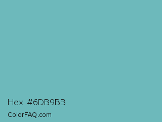Hex #6db9bb Color is a normal cyan color and the nearest color is Neptune #7cb7bb. Hex code #6db9bb and RGB value is rgb(109,185,187). In RGB color space, this color is composed of 43% red, 73% green, 73% blue, In CMYK color space, this color is composed of 42% cyan, 1% magenta, 0% yellow , 27% black , In HSL color space, this color has a hue angle of 182° , 36% saturation and 58% lightness.
