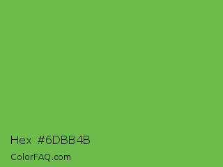 Hex #6dbb4b Color is a normal green color and the nearest color is Bud Green #7bb661. Hex code #6dbb4b and RGB value is rgb(109,187,75). In RGB color space, this color is composed of 43% red, 73% green, 29% blue, In CMYK color space, this color is composed of 42% cyan, 0% magenta, 60% yellow , 27% black , In HSL color space, this color has a hue angle of 102° , 45% saturation and 51% lightness.