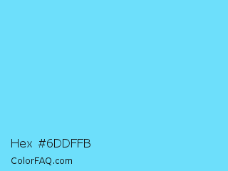 Hex #6ddffb Color is a light cyan color and the nearest color is Spray #79deec. Hex code #6ddffb and RGB value is rgb(109,223,251). In RGB color space, this color is composed of 43% red, 87% green, 98% blue, In CMYK color space, this color is composed of 57% cyan, 11% magenta, 0% yellow , 2% black , In HSL color space, this color has a hue angle of 192° , 95% saturation and 71% lightness.