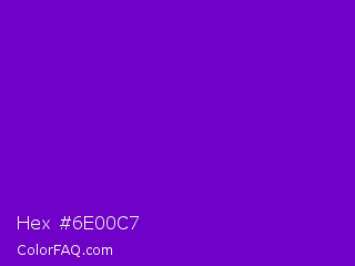 Hex #6e00c7 Color is a normal purple color and the nearest color is French Violet #8806ce. Hex code #6e00c7 and RGB value is rgb(110,0,199). In RGB color space, this color is composed of 43% red, 0% green, 78% blue, In CMYK color space, this color is composed of 45% cyan, 100% magenta, 0% yellow , 22% black , In HSL color space, this color has a hue angle of 273° , 100% saturation and 39% lightness.
