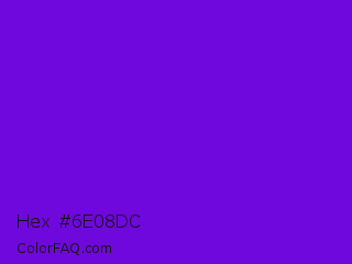 Hex #6e08dc Color is a normal violet color and the nearest color is French Violet #8806ce. Hex code #6e08dc and RGB value is rgb(110,8,220). In RGB color space, this color is composed of 43% red, 3% green, 86% blue, In CMYK color space, this color is composed of 50% cyan, 96% magenta, 0% yellow , 14% black , In HSL color space, this color has a hue angle of 269° , 93% saturation and 45% lightness.