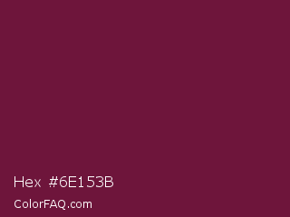 Hex #6e153b Color is a dark rose color and the nearest color is Pansy Purple #78184a. Hex code #6e153b and RGB value is rgb(110,21,59). In RGB color space, this color is composed of 43% red, 8% green, 23% blue, In CMYK color space, this color is composed of 0% cyan, 81% magenta, 46% yellow , 57% black , In HSL color space, this color has a hue angle of 334° , 68% saturation and 26% lightness.