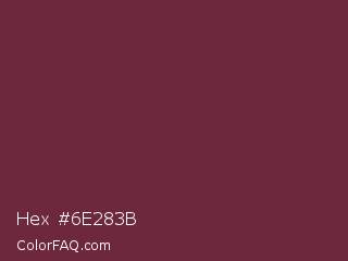 Hex #6e283b Color is a dark rose color and the nearest color is Wine #722f37. Hex code #6e283b and RGB value is rgb(110,40,59). In RGB color space, this color is composed of 43% red, 16% green, 23% blue, In CMYK color space, this color is composed of 0% cyan, 64% magenta, 46% yellow , 57% black , In HSL color space, this color has a hue angle of 344° , 47% saturation and 29% lightness.