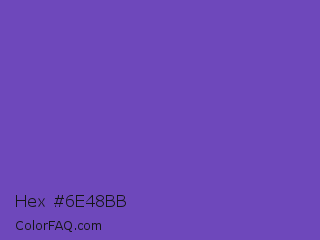 Hex #6e48bb Color is a normal indigo color and the nearest color is Studio #714ab2. Hex code #6e48bb and RGB value is rgb(110,72,187). In RGB color space, this color is composed of 43% red, 28% green, 73% blue, In CMYK color space, this color is composed of 41% cyan, 61% magenta, 0% yellow , 27% black , In HSL color space, this color has a hue angle of 260° , 46% saturation and 51% lightness.