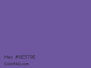 Hex #6e579e Color is a normal indigo color and the nearest color is Dark Lavender #734f96. Hex code #6e579e and RGB value is rgb(110,87,158). In RGB color space, this color is composed of 43% red, 34% green, 62% blue, In CMYK color space, this color is composed of 30% cyan, 45% magenta, 0% yellow , 38% black , In HSL color space, this color has a hue angle of 259° , 29% saturation and 48% lightness.