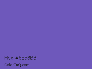 Hex #6e58bb Color is a normal indigo color and the nearest color is Blue Violet #6456b7. Hex code #6e58bb and RGB value is rgb(110,88,187). In RGB color space, this color is composed of 43% red, 35% green, 73% blue, In CMYK color space, this color is composed of 41% cyan, 53% magenta, 0% yellow , 27% black , In HSL color space, this color has a hue angle of 253° , 42% saturation and 54% lightness.