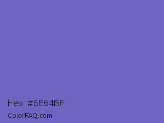 Hex #6e64bf Color is a normal indigo color and the nearest color is Toolbox #746cc0. Hex code #6e64bf and RGB value is rgb(110,100,191). In RGB color space, this color is composed of 43% red, 39% green, 75% blue, In CMYK color space, this color is composed of 42% cyan, 48% magenta, 0% yellow , 25% black , In HSL color space, this color has a hue angle of 247° , 42% saturation and 57% lightness.