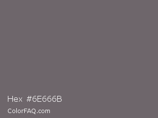 Hex #6e666b Color is a normal magenta color and the nearest color is Dove Gray #6d6c6c. Hex code #6e666b and RGB value is rgb(110,102,107). In RGB color space, this color is composed of 43% red, 40% green, 42% blue, In CMYK color space, this color is composed of 0% cyan, 7% magenta, 3% yellow , 57% black , In HSL color space, this color has a hue angle of 323° , 4% saturation and 42% lightness.