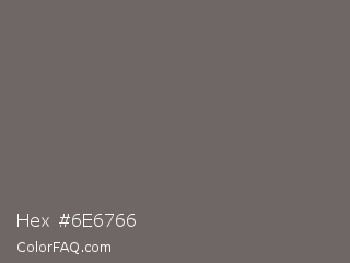 Hex #6e6766 Color is a normal red color and the nearest color is Flint #6f6a61. Hex code #6e6766 and RGB value is rgb(110,103,102). In RGB color space, this color is composed of 43% red, 40% green, 40% blue, In CMYK color space, this color is composed of 0% cyan, 6% magenta, 7% yellow , 57% black , In HSL color space, this color has a hue angle of 7° , 4% saturation and 42% lightness.