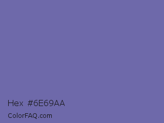 Hex #6e69aa Color is a normal indigo color and the nearest color is Deluge #7563a8. Hex code #6e69aa and RGB value is rgb(110,105,170). In RGB color space, this color is composed of 43% red, 41% green, 67% blue, In CMYK color space, this color is composed of 35% cyan, 38% magenta, 0% yellow , 33% black , In HSL color space, this color has a hue angle of 245° , 28% saturation and 54% lightness.