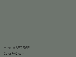 Hex #6e756e Color is a normal green color and the nearest color is Nickel #727472. Hex code #6e756e and RGB value is rgb(110,117,110). In RGB color space, this color is composed of 43% red, 46% green, 43% blue, In CMYK color space, this color is composed of 6% cyan, 0% magenta, 6% yellow , 54% black , In HSL color space, this color has a hue angle of 120° , 3% saturation and 45% lightness.