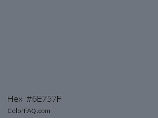 Hex #6e757f Color is a normal blue color and the nearest color is Pale Sky #6e7783. Hex code #6e757f and RGB value is rgb(110,117,127). In RGB color space, this color is composed of 43% red, 46% green, 50% blue, In CMYK color space, this color is composed of 13% cyan, 8% magenta, 0% yellow , 50% black , In HSL color space, this color has a hue angle of 215° , 7% saturation and 46% lightness.