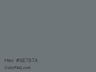 Hex #6e767a Color is a normal blue color and the nearest color is Sonic Silver #757575. Hex code #6e767a and RGB value is rgb(110,118,122). In RGB color space, this color is composed of 43% red, 46% green, 48% blue, In CMYK color space, this color is composed of 10% cyan, 3% magenta, 0% yellow , 52% black , In HSL color space, this color has a hue angle of 200° , 5% saturation and 45% lightness.