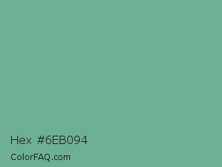 Hex #6eb094 Color is a normal green color and the nearest color is Silver Tree #66b58f. Hex code #6eb094 and RGB value is rgb(110,176,148). In RGB color space, this color is composed of 43% red, 69% green, 58% blue, In CMYK color space, this color is composed of 38% cyan, 0% magenta, 16% yellow , 31% black , In HSL color space, this color has a hue angle of 155° , 29% saturation and 56% lightness.