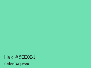 Hex #6ee0b1 Color is a light green color and the nearest color is Medium Aquamarine #66ddaa. Hex code #6ee0b1 and RGB value is rgb(110,224,177). In RGB color space, this color is composed of 43% red, 88% green, 69% blue, In CMYK color space, this color is composed of 51% cyan, 0% magenta, 21% yellow , 12% black , In HSL color space, this color has a hue angle of 155° , 65% saturation and 65% lightness.