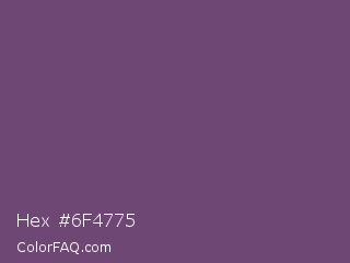 Hex #6f4775 Color is a normal magenta color and the nearest color is Maximum Purple #733380. Hex code #6f4775 and RGB value is rgb(111,71,117). In RGB color space, this color is composed of 44% red, 28% green, 46% blue, In CMYK color space, this color is composed of 5% cyan, 39% magenta, 0% yellow , 54% black , In HSL color space, this color has a hue angle of 292° , 24% saturation and 37% lightness.
