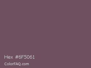Hex #6f5061 Color is a normal magenta color and the nearest color is Zambezi #685558. Hex code #6f5061 and RGB value is rgb(111,80,97). In RGB color space, this color is composed of 44% red, 31% green, 38% blue, In CMYK color space, this color is composed of 0% cyan, 28% magenta, 13% yellow , 56% black , In HSL color space, this color has a hue angle of 327° , 16% saturation and 37% lightness.