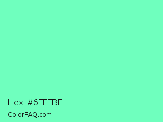 Hex #6fffbe Color is a light green color and the nearest color is Aquamarine #7fffd4. Hex code #6fffbe and RGB value is rgb(111,255,190). In RGB color space, this color is composed of 44% red, 100% green, 75% blue, In CMYK color space, this color is composed of 56% cyan, 0% magenta, 25% yellow , 0% black , In HSL color space, this color has a hue angle of 153° , 100% saturation and 72% lightness.