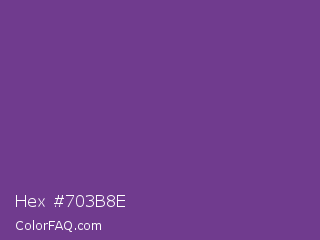 Hex #703b8e Color is a normal purple color and the nearest color is Affair #714693. Hex code #703b8e and RGB value is rgb(112,59,142). In RGB color space, this color is composed of 44% red, 23% green, 56% blue, In CMYK color space, this color is composed of 21% cyan, 58% magenta, 0% yellow , 44% black , In HSL color space, this color has a hue angle of 278° , 41% saturation and 39% lightness.