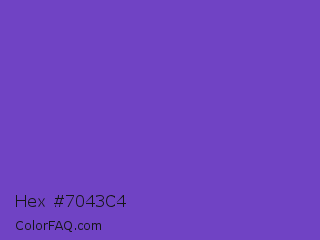 Hex #7043c4 Color is a normal violet color and the nearest color is Studio #714ab2. Hex code #7043c4 and RGB value is rgb(112,67,196). In RGB color space, this color is composed of 44% red, 26% green, 77% blue, In CMYK color space, this color is composed of 43% cyan, 66% magenta, 0% yellow , 23% black , In HSL color space, this color has a hue angle of 261° , 52% saturation and 52% lightness.