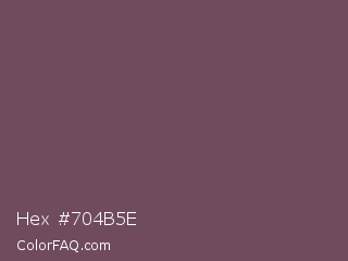 Hex #704b5e Color is a normal rose color and the nearest color is Zambezi #685558. Hex code #704b5e and RGB value is rgb(112,75,94). In RGB color space, this color is composed of 44% red, 29% green, 37% blue, In CMYK color space, this color is composed of 0% cyan, 33% magenta, 16% yellow , 56% black , In HSL color space, this color has a hue angle of 329° , 20% saturation and 37% lightness.