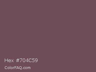 Hex #704c59 Color is a normal rose color and the nearest color is Ferra #704f50. Hex code #704c59 and RGB value is rgb(112,76,89). In RGB color space, this color is composed of 44% red, 30% green, 35% blue, In CMYK color space, this color is composed of 0% cyan, 32% magenta, 21% yellow , 56% black , In HSL color space, this color has a hue angle of 338° , 19% saturation and 37% lightness.