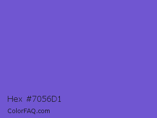 Hex #7056d1 Color is a normal indigo color and the nearest color is Slate Blue #6a5acd. Hex code #7056d1 and RGB value is rgb(112,86,209). In RGB color space, this color is composed of 44% red, 34% green, 82% blue, In CMYK color space, this color is composed of 46% cyan, 59% magenta, 0% yellow , 18% black , In HSL color space, this color has a hue angle of 253° , 57% saturation and 58% lightness.