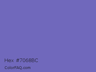 Hex #7068bc Color is a normal indigo color and the nearest color is Toolbox #746cc0. Hex code #7068bc and RGB value is rgb(112,104,188). In RGB color space, this color is composed of 44% red, 41% green, 74% blue, In CMYK color space, this color is composed of 40% cyan, 45% magenta, 0% yellow , 26% black , In HSL color space, this color has a hue angle of 246° , 39% saturation and 57% lightness.