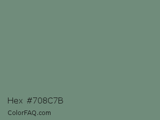 Hex #708c7b Color is a normal green color and the nearest color is Xanadu #738678. Hex code #708c7b and RGB value is rgb(112,140,123). In RGB color space, this color is composed of 44% red, 55% green, 48% blue, In CMYK color space, this color is composed of 20% cyan, 0% magenta, 12% yellow , 45% black , In HSL color space, this color has a hue angle of 144° , 11% saturation and 49% lightness.