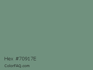 Hex #70917e Color is a normal green color and the nearest color is Laurel #749378. Hex code #70917e and RGB value is rgb(112,145,126). In RGB color space, this color is composed of 44% red, 57% green, 49% blue, In CMYK color space, this color is composed of 23% cyan, 0% magenta, 13% yellow , 43% black , In HSL color space, this color has a hue angle of 145° , 13% saturation and 50% lightness.