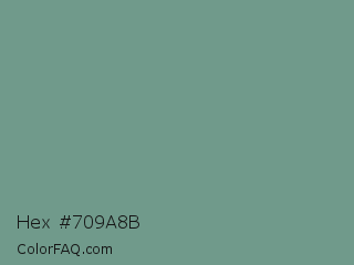 Hex #709a8b Color is a normal green color and the nearest color is Oxley #779e86. Hex code #709a8b and RGB value is rgb(112,154,139). In RGB color space, this color is composed of 44% red, 60% green, 55% blue, In CMYK color space, this color is composed of 27% cyan, 0% magenta, 10% yellow , 40% black , In HSL color space, this color has a hue angle of 159° , 17% saturation and 52% lightness.