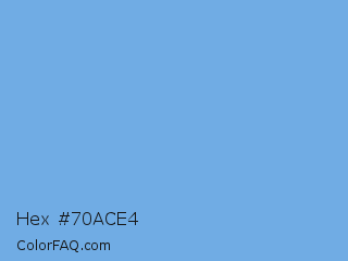Hex #70ace4 Color is a light blue color and the nearest color is Little Boy Blue #6ca0dc. Hex code #70ace4 and RGB value is rgb(112,172,228). In RGB color space, this color is composed of 44% red, 67% green, 89% blue, In CMYK color space, this color is composed of 51% cyan, 25% magenta, 0% yellow , 11% black , In HSL color space, this color has a hue angle of 209° , 68% saturation and 67% lightness.