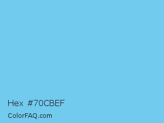Hex #70cbef Color is a light blue color and the nearest color is Sky Blue #76d7ea. Hex code #70cbef and RGB value is rgb(112,203,239). In RGB color space, this color is composed of 44% red, 80% green, 94% blue, In CMYK color space, this color is composed of 53% cyan, 15% magenta, 0% yellow , 6% black , In HSL color space, this color has a hue angle of 197° , 80% saturation and 69% lightness.