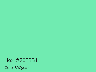 Hex #70ebb1 Color is a light green color and the nearest color is Medium Aquamarine #66ddaa. Hex code #70ebb1 and RGB value is rgb(112,235,177). In RGB color space, this color is composed of 44% red, 92% green, 69% blue, In CMYK color space, this color is composed of 52% cyan, 0% magenta, 25% yellow , 8% black , In HSL color space, this color has a hue angle of 152° , 75% saturation and 68% lightness.