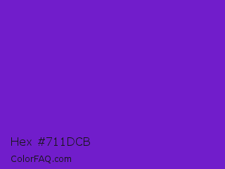 Hex #711dcb Color is a normal violet color and the nearest color is Purple Heart Crayola #652dc1. Hex code #711dcb and RGB value is rgb(113,29,203). In RGB color space, this color is composed of 44% red, 11% green, 80% blue, In CMYK color space, this color is composed of 44% cyan, 86% magenta, 0% yellow , 20% black , In HSL color space, this color has a hue angle of 269° , 75% saturation and 45% lightness.