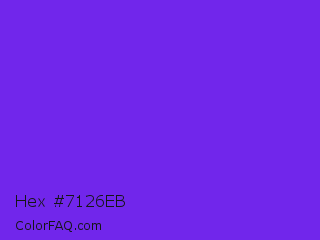 Hex #7126eb Color is a normal violet color and the nearest color is Blue Violet #8a2be2. Hex code #7126eb and RGB value is rgb(113,38,235). In RGB color space, this color is composed of 44% red, 15% green, 92% blue, In CMYK color space, this color is composed of 52% cyan, 84% magenta, 0% yellow , 8% black , In HSL color space, this color has a hue angle of 263° , 83% saturation and 54% lightness.