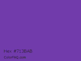 Hex #713bab Color is a normal violet color and the nearest color is Royal Purple #6b3fa0. Hex code #713bab and RGB value is rgb(113,59,171). In RGB color space, this color is composed of 44% red, 23% green, 67% blue, In CMYK color space, this color is composed of 34% cyan, 65% magenta, 0% yellow , 33% black , In HSL color space, this color has a hue angle of 269° , 49% saturation and 45% lightness.