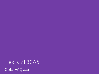 Hex #713ca6 Color is a normal violet color and the nearest color is Royal Purple #6b3fa0. Hex code #713ca6 and RGB value is rgb(113,60,166). In RGB color space, this color is composed of 44% red, 24% green, 65% blue, In CMYK color space, this color is composed of 32% cyan, 64% magenta, 0% yellow , 35% black , In HSL color space, this color has a hue angle of 270° , 47% saturation and 44% lightness.