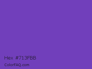 Hex #713fbb Color is a normal violet color and the nearest color is Studio #714ab2. Hex code #713fbb and RGB value is rgb(113,63,187). In RGB color space, this color is composed of 44% red, 25% green, 73% blue, In CMYK color space, this color is composed of 40% cyan, 66% magenta, 0% yellow , 27% black , In HSL color space, this color has a hue angle of 264° , 50% saturation and 49% lightness.