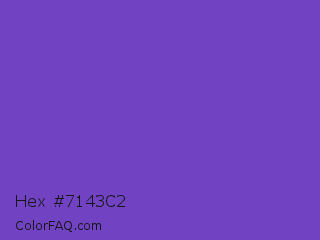Hex #7143c2 Color is a normal violet color and the nearest color is Studio #714ab2. Hex code #7143c2 and RGB value is rgb(113,67,194). In RGB color space, this color is composed of 44% red, 26% green, 76% blue, In CMYK color space, this color is composed of 42% cyan, 65% magenta, 0% yellow , 24% black , In HSL color space, this color has a hue angle of 262° , 51% saturation and 51% lightness.