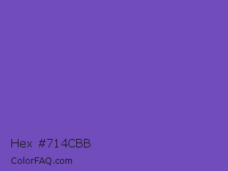 Hex #714cbb Color is a normal indigo color and the nearest color is Studio #714ab2. Hex code #714cbb and RGB value is rgb(113,76,187). In RGB color space, this color is composed of 44% red, 30% green, 73% blue, In CMYK color space, this color is composed of 40% cyan, 59% magenta, 0% yellow , 27% black , In HSL color space, this color has a hue angle of 260° , 45% saturation and 52% lightness.